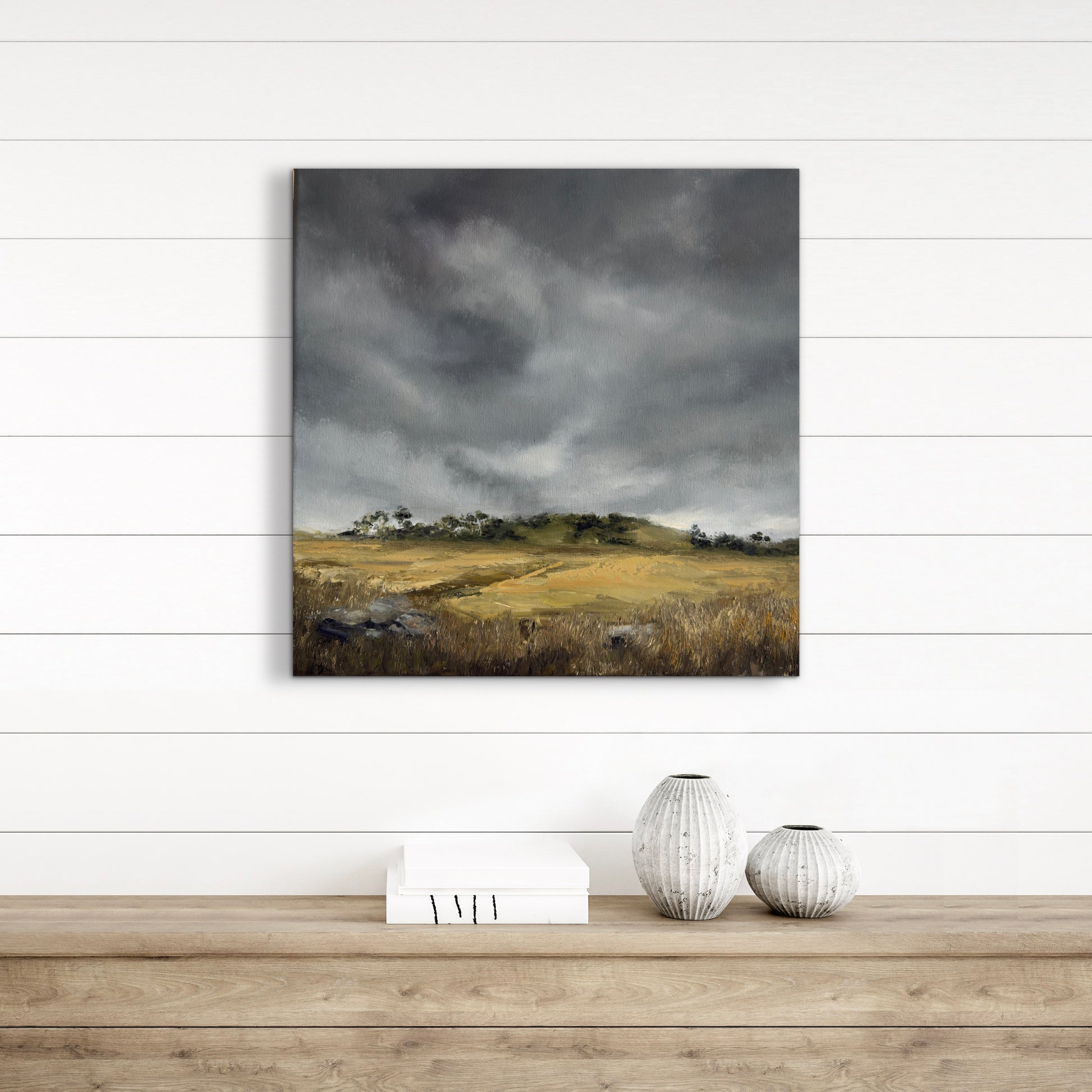 Steel coloured clouds heavy with rain. Parched dry grasses wait patiently.