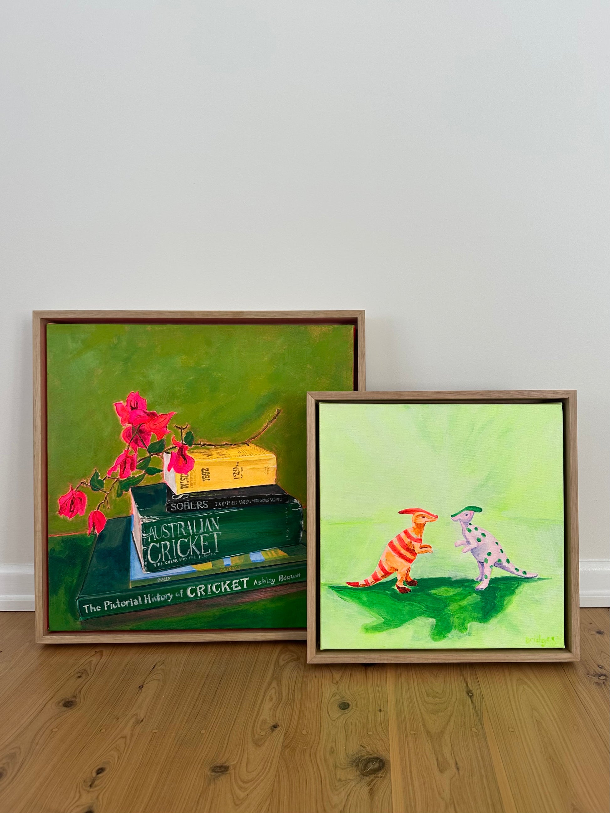 33.5 x 33.5 cm. Acrylic and house paint on canvas, framed in raw Oak.