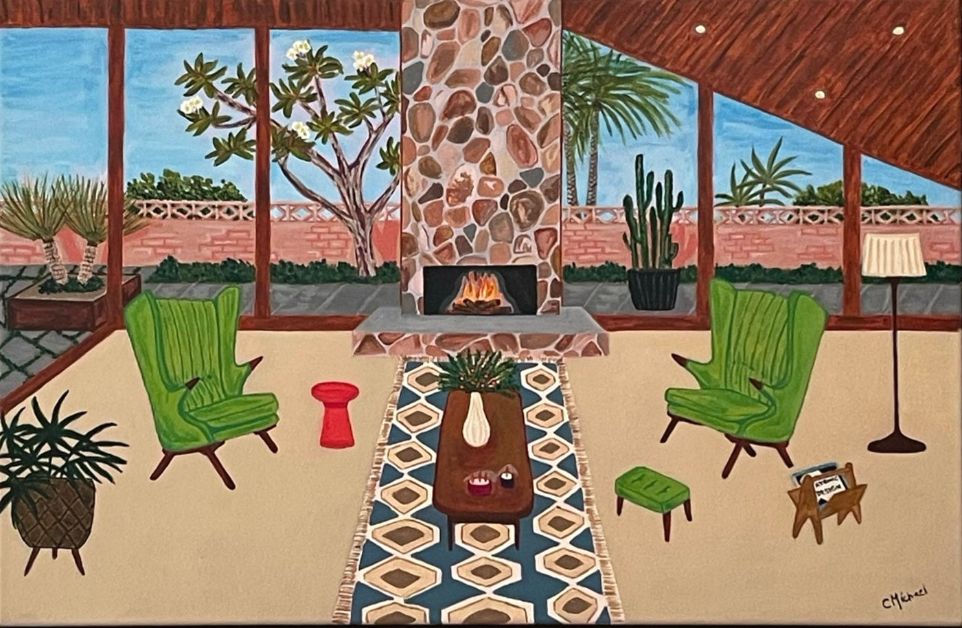 Blending interior design with natural elements, Green Haven captures Mid Century charm reminiscent of Palm Springs, creating a sense of tranquility and connection to nature.
