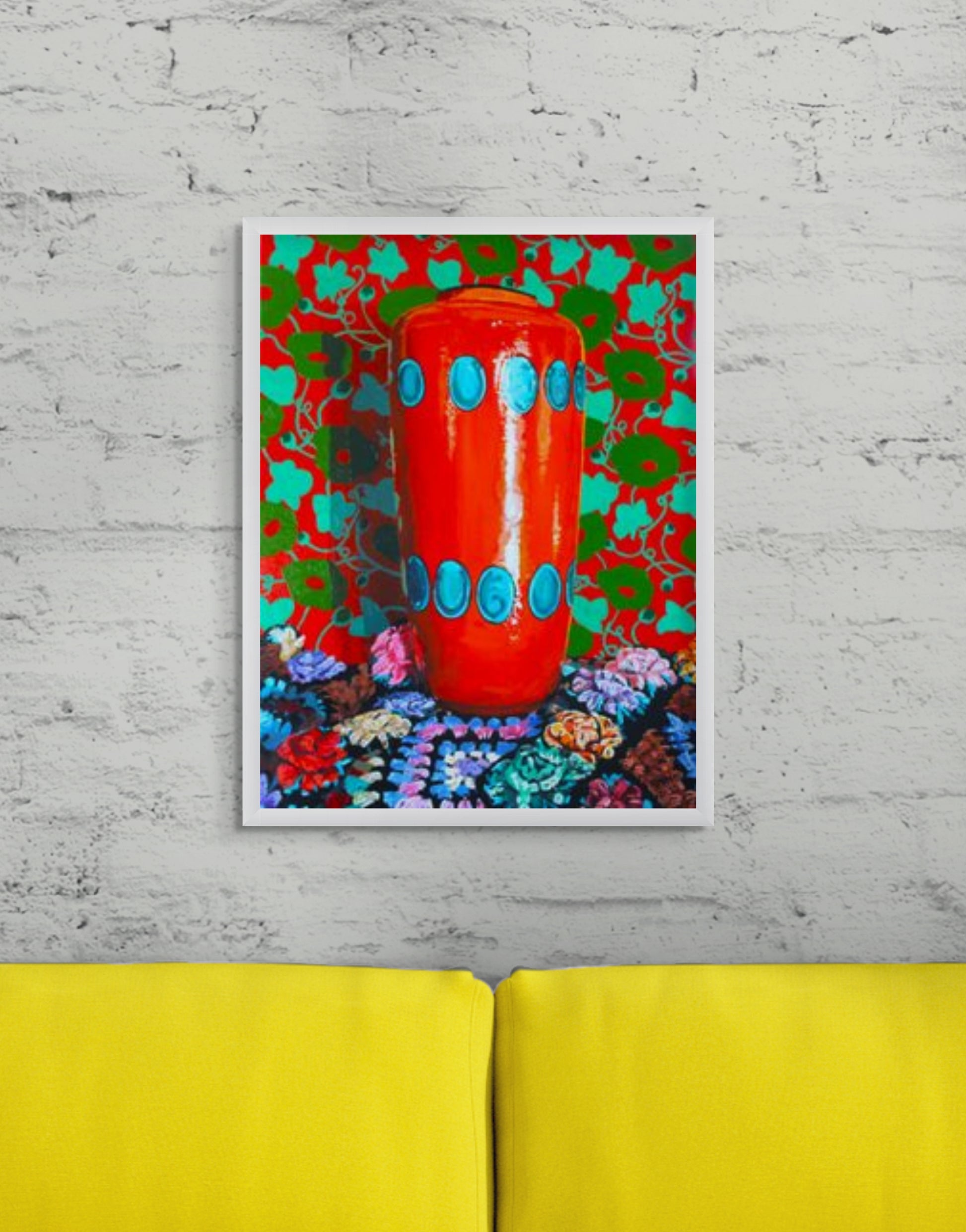 66 x 51cm. Acrylic on Cotton, White painted wood