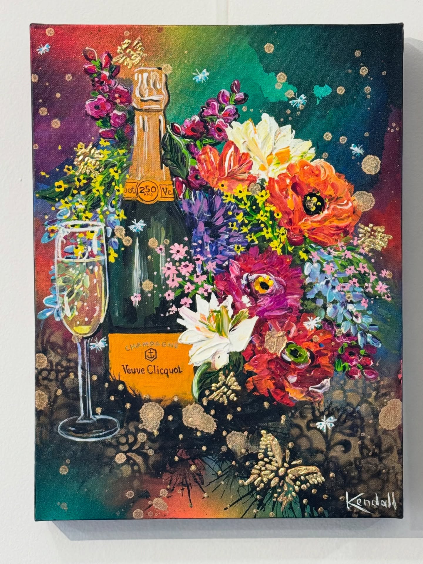 This piece is a bundle of fun with a mix of delicious colours, flowing Moet and bustling florals.