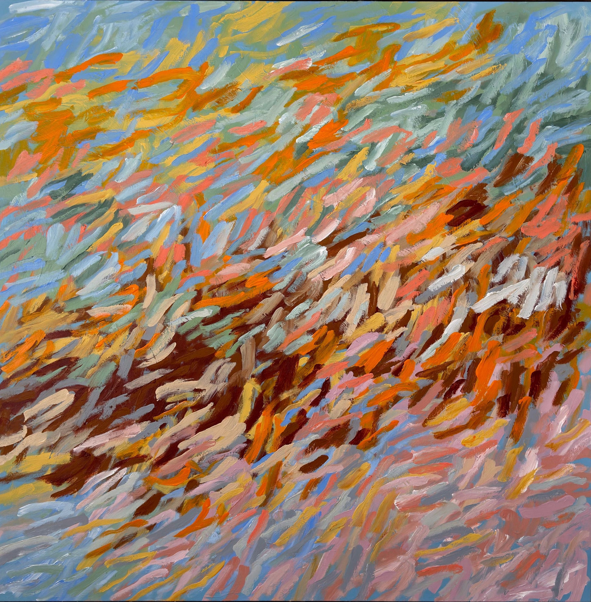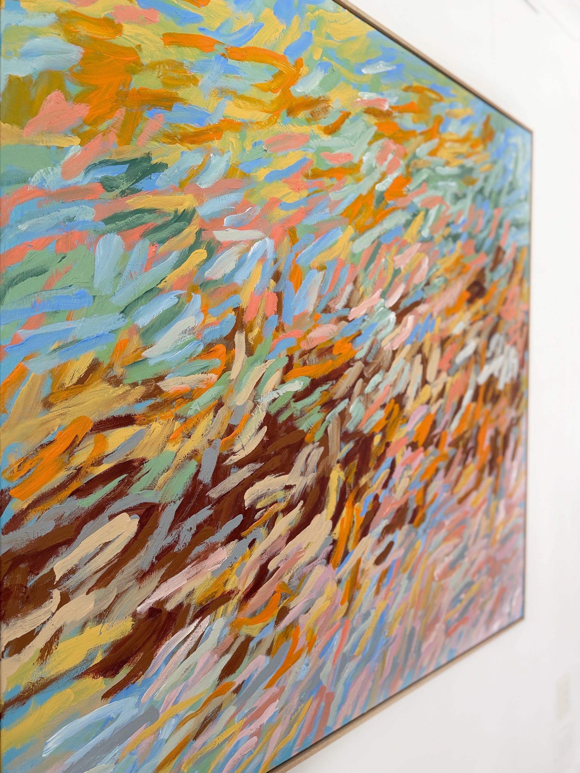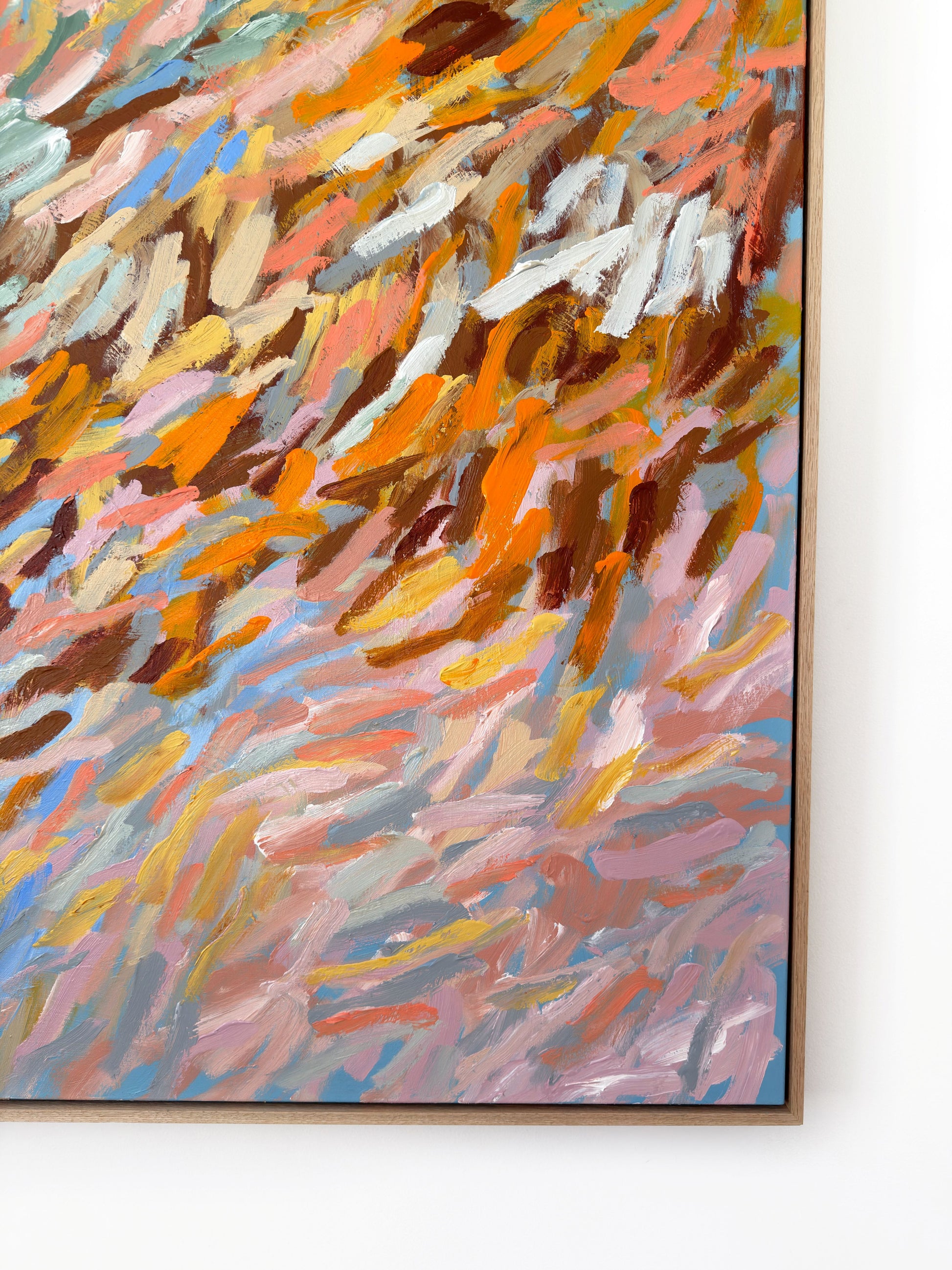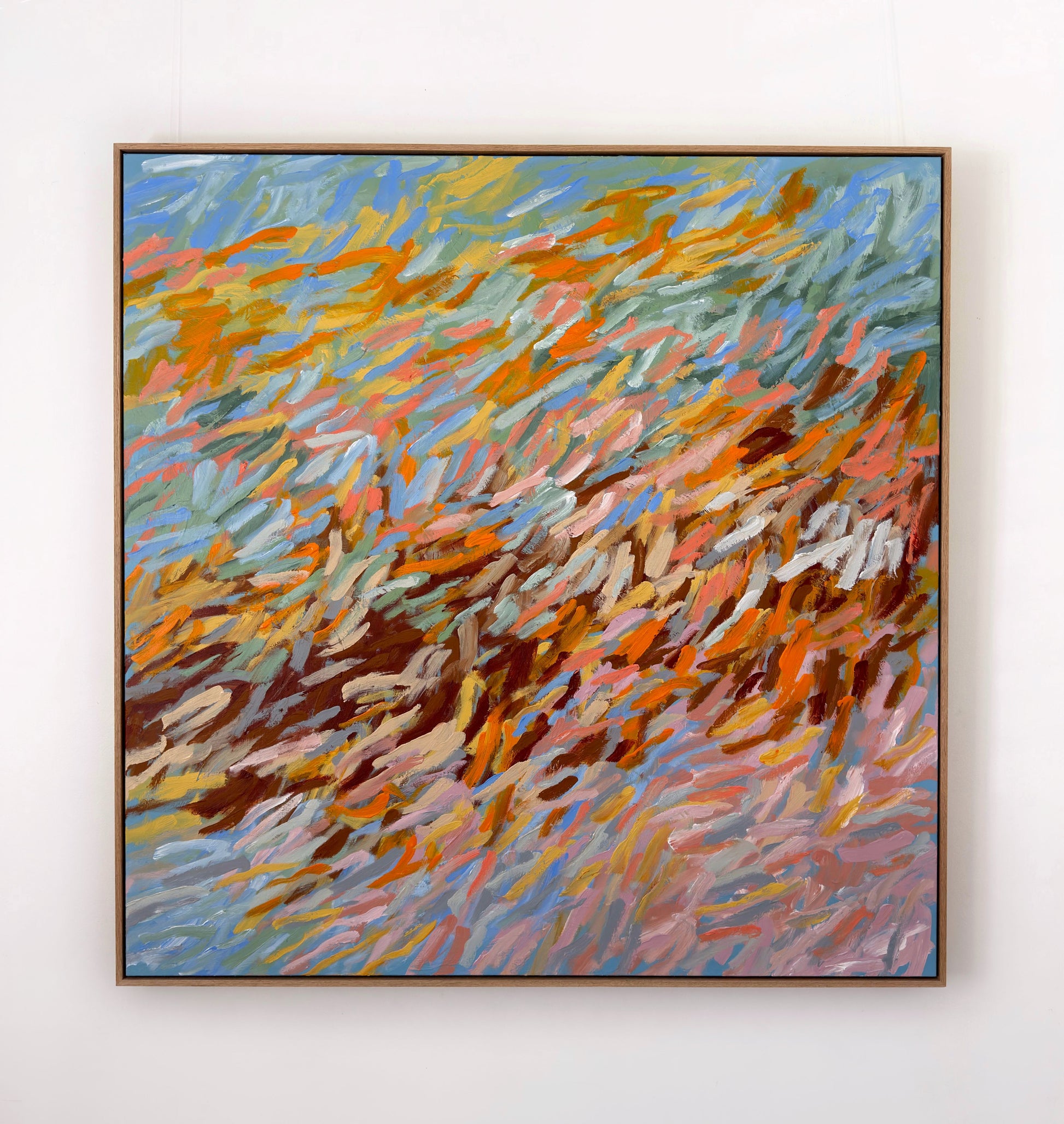 123cm x 123cm. Acrylic on canvas, framed in Natural oak.