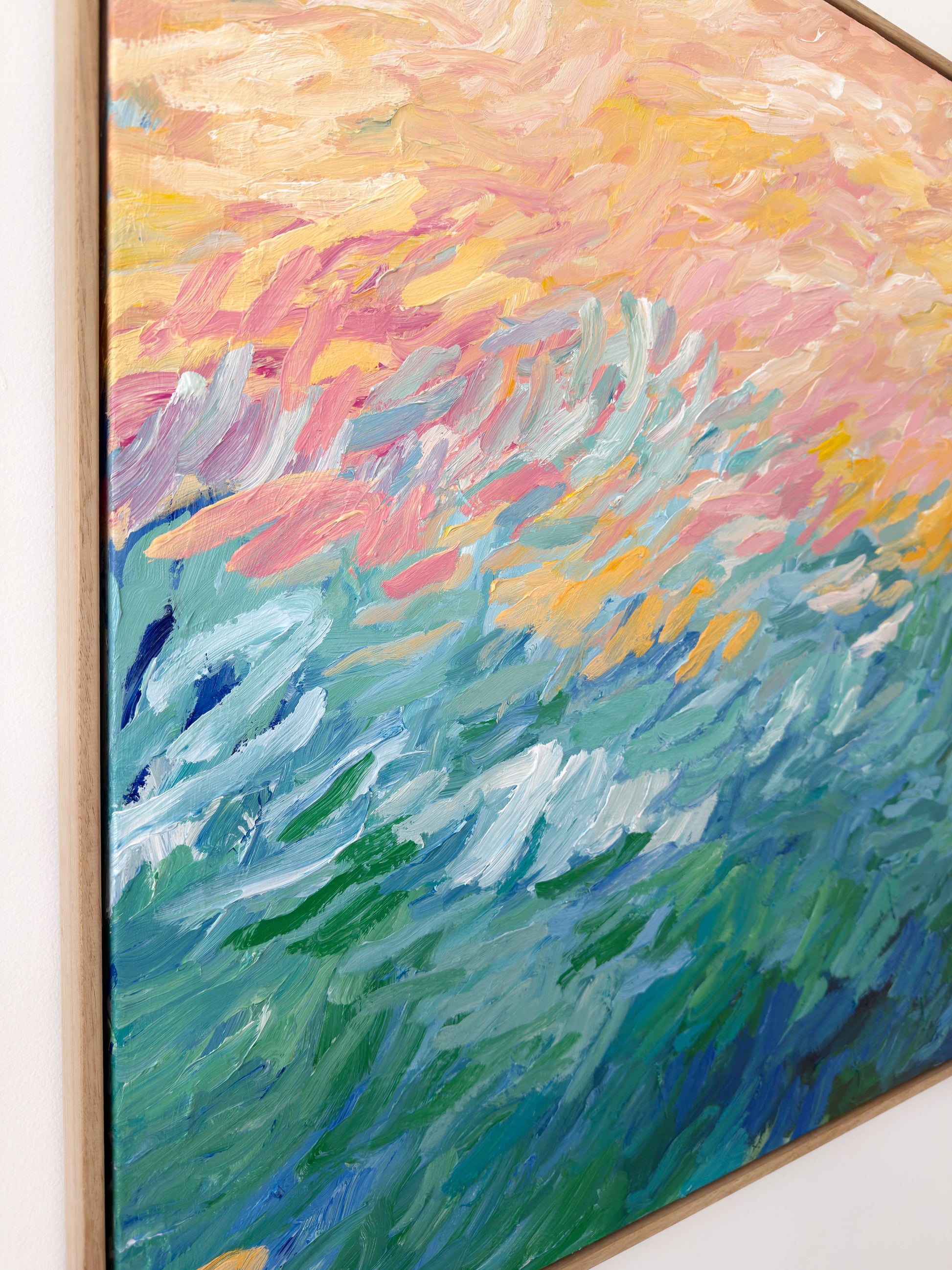 83 x 83cm. Acrylic on cotton canvas, framed in Natural oak.