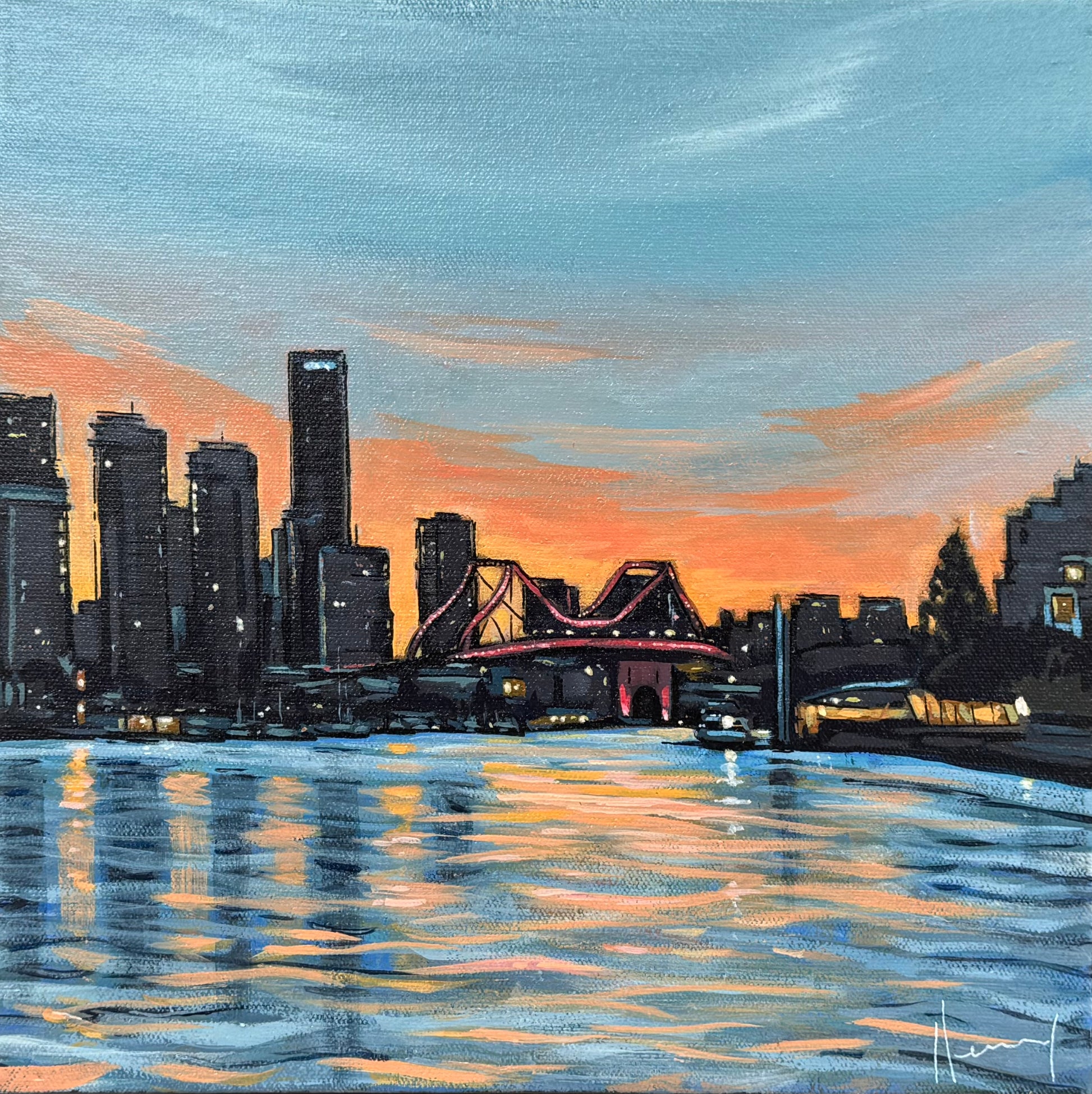 32 x 32cm. Acrylic on canvas, framed in walnut.