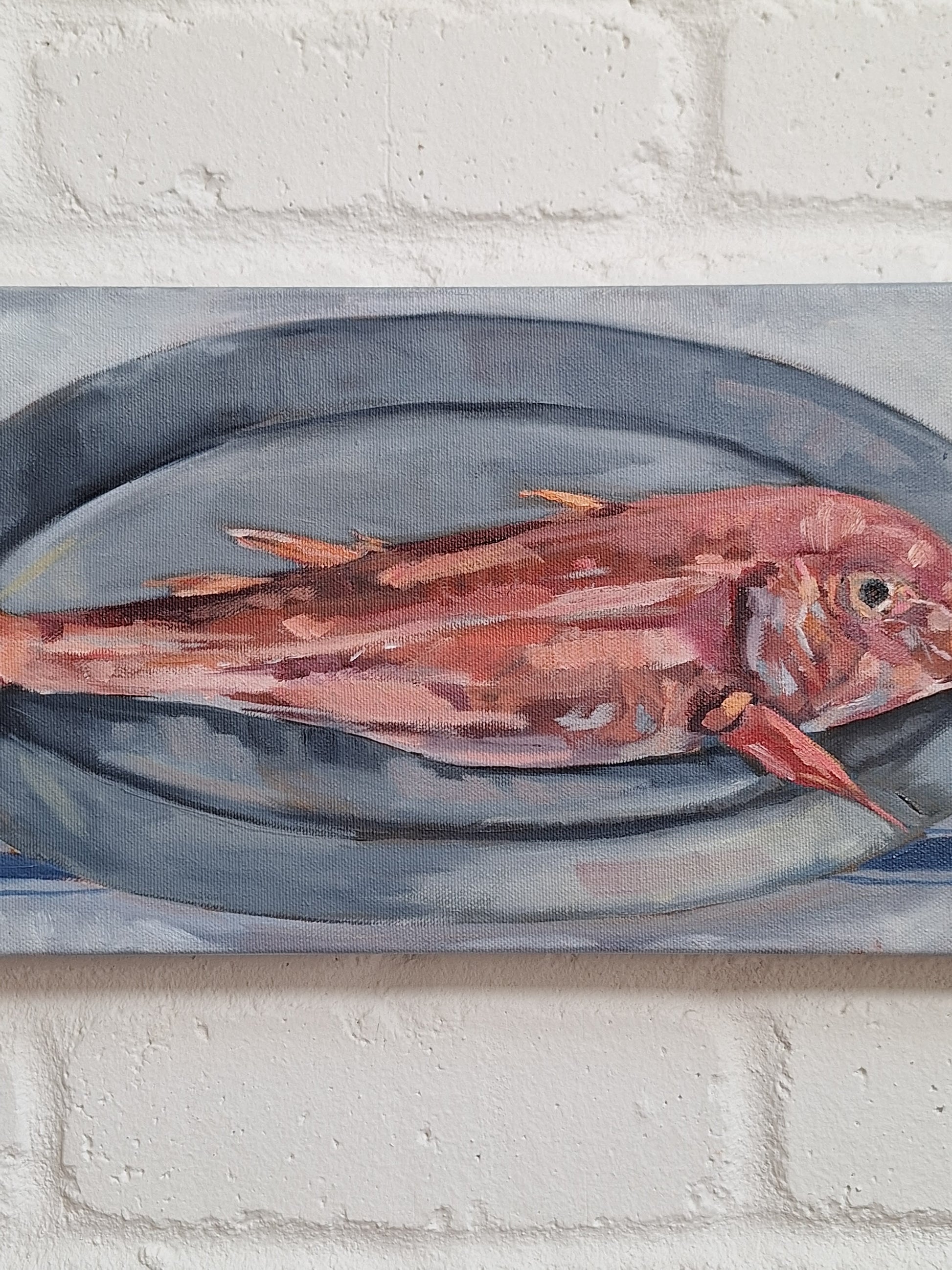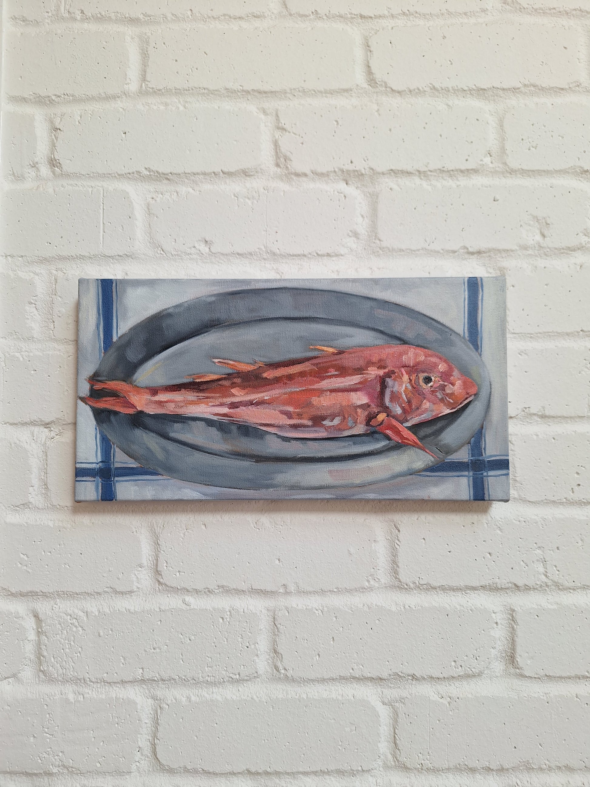 42 x 22 cm cm. Acrylic and oil on canvas, unframed.