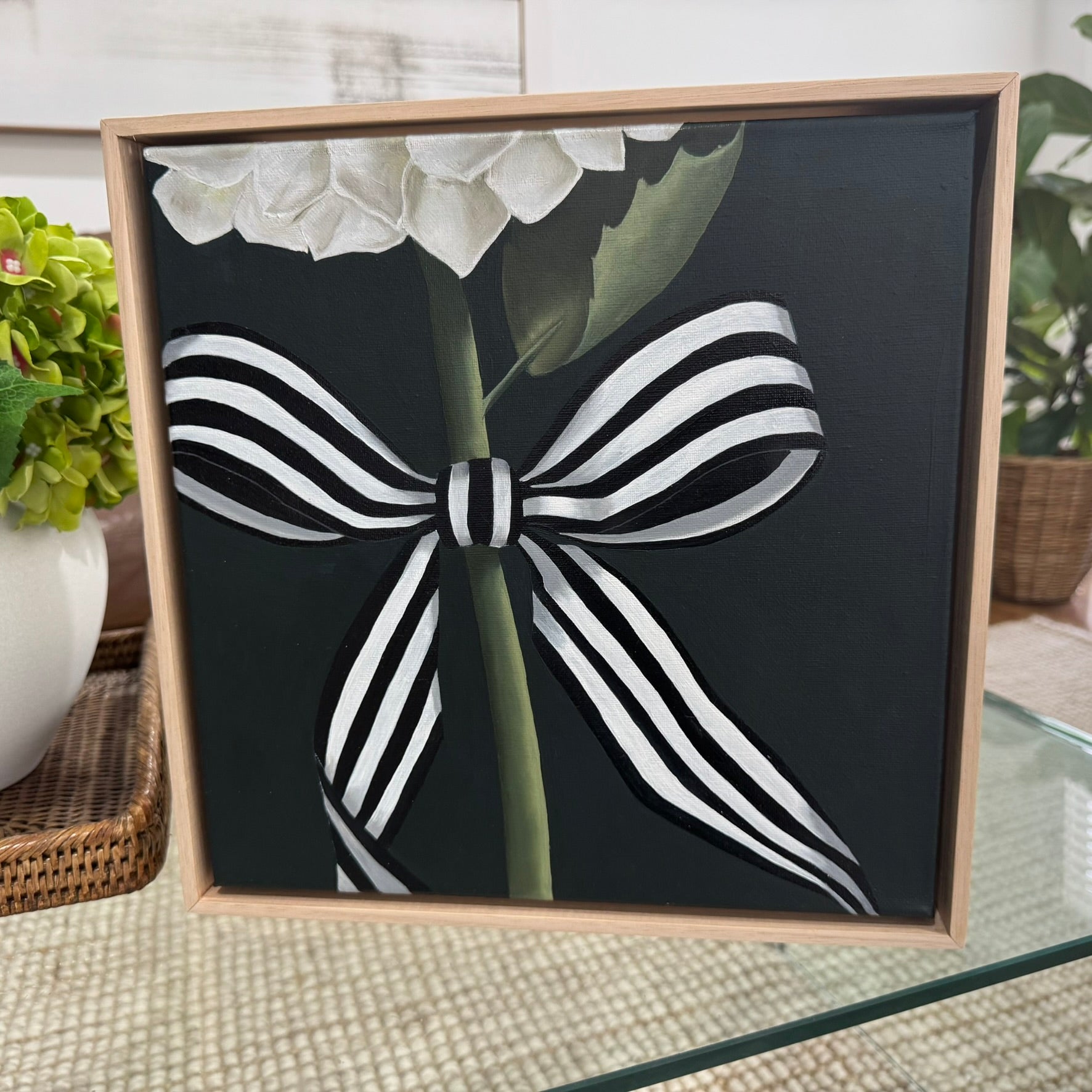 32 x 32cm. Acrylic and Oil on Canvas, Framed in natural oak.