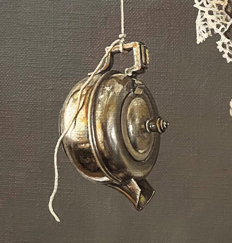 This painting relates to my father as much to my mother. He loved a good cup of tea and marvelled at all sorts of old bottles. Special things were kept in the crystal cabinet (which he made) always on a doily.