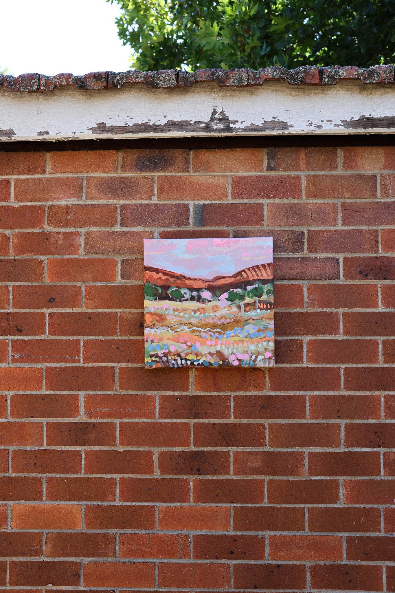 43 x 43cm. Acrylic and oil pastel on canvas. Framed in Australian flooded gum.